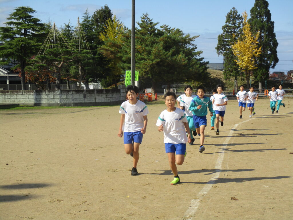11月13日(木)に、持久走記録会を行いました。これまで練習した成果を出そうと、子供たちは張り切って取り組みました。みんな最後まで一生懸命に走り抜き、素敵な笑顔で終わることができました。