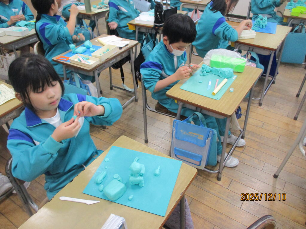 2年生 図画工作科 粘土で2学期の思い出を表現しています