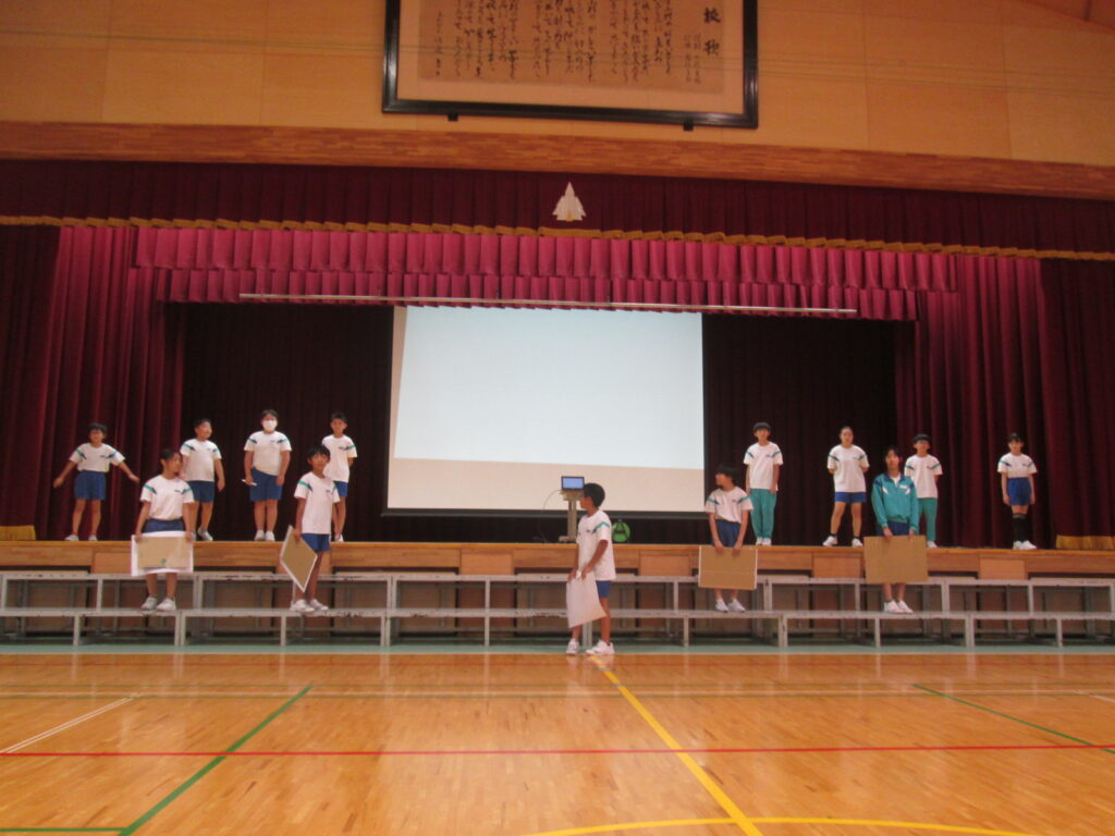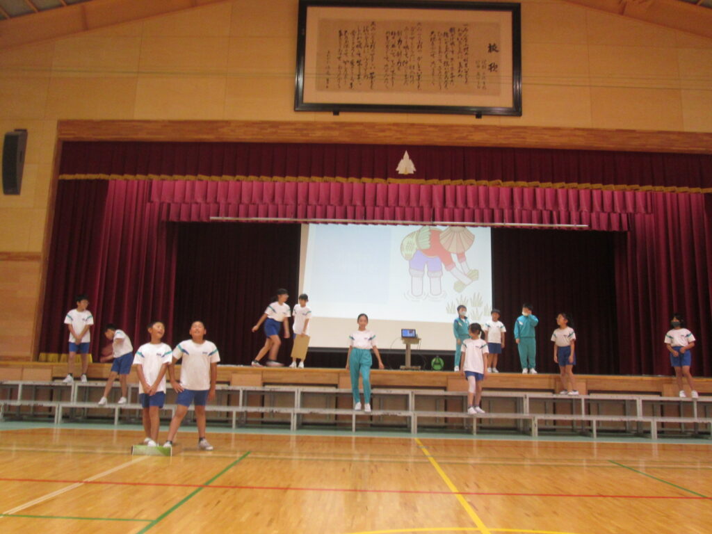 子供たちはステージ発表会に向けて、練習をしています。場面ごとに並び方やせりふの伝え方等を話し合いを重ね、よりよい発表になるようにがんばっています。また、小道具やスライドも自分たちで工夫して作り、見てくださる方たちに分かりやすく伝えたいという思いをもって取り組んでいます。