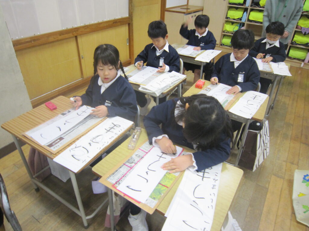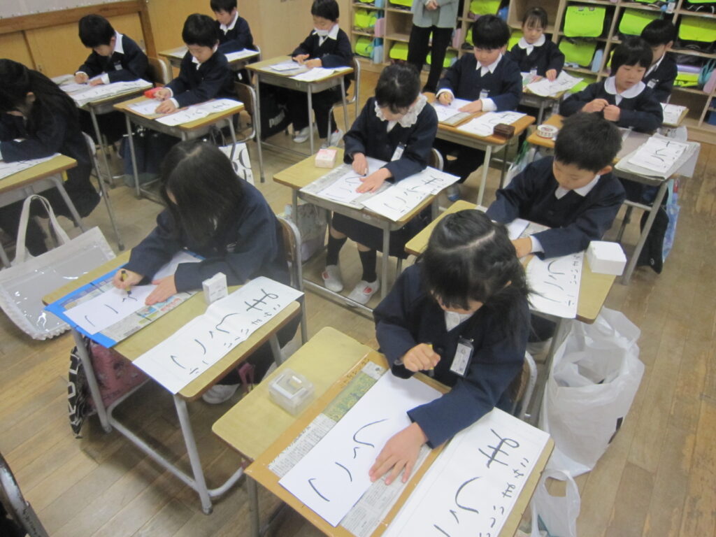 書初大会では、これまでの練習の成果を出そうと、心を落ち着かせ、真剣な眼差しで一文字一文字丁寧に書きました。3学期もみんななかよく、元気いっぱい過ごしていきます。