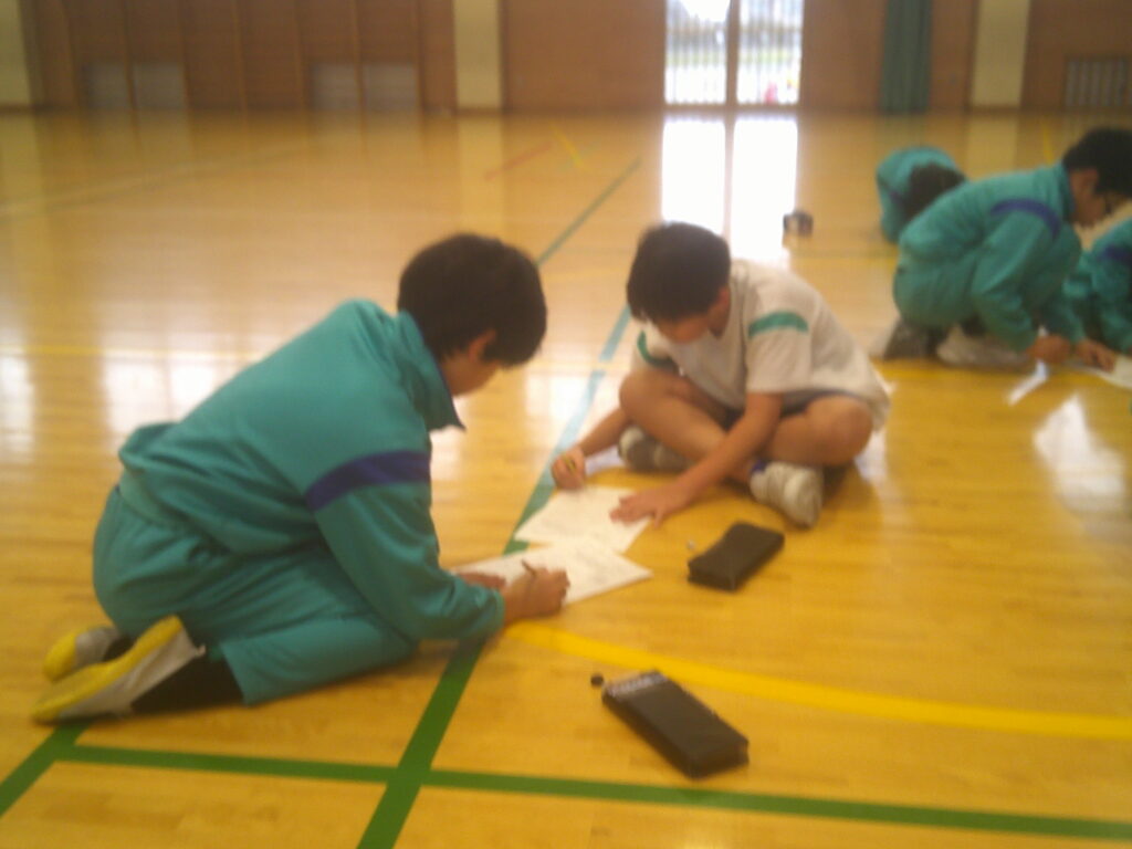 3学期のふり返りをした後、4チームで試合をしました。チームでゴールに向かってドリブルをしたり、パスを繋いだりして楽しみながら活動しました。6年生が、4,5年生にタイマーの使い方を教えてあげるなど、異学年の友達とも交流する姿が見られました。