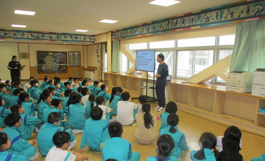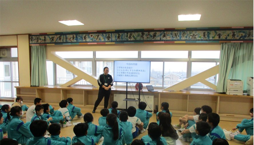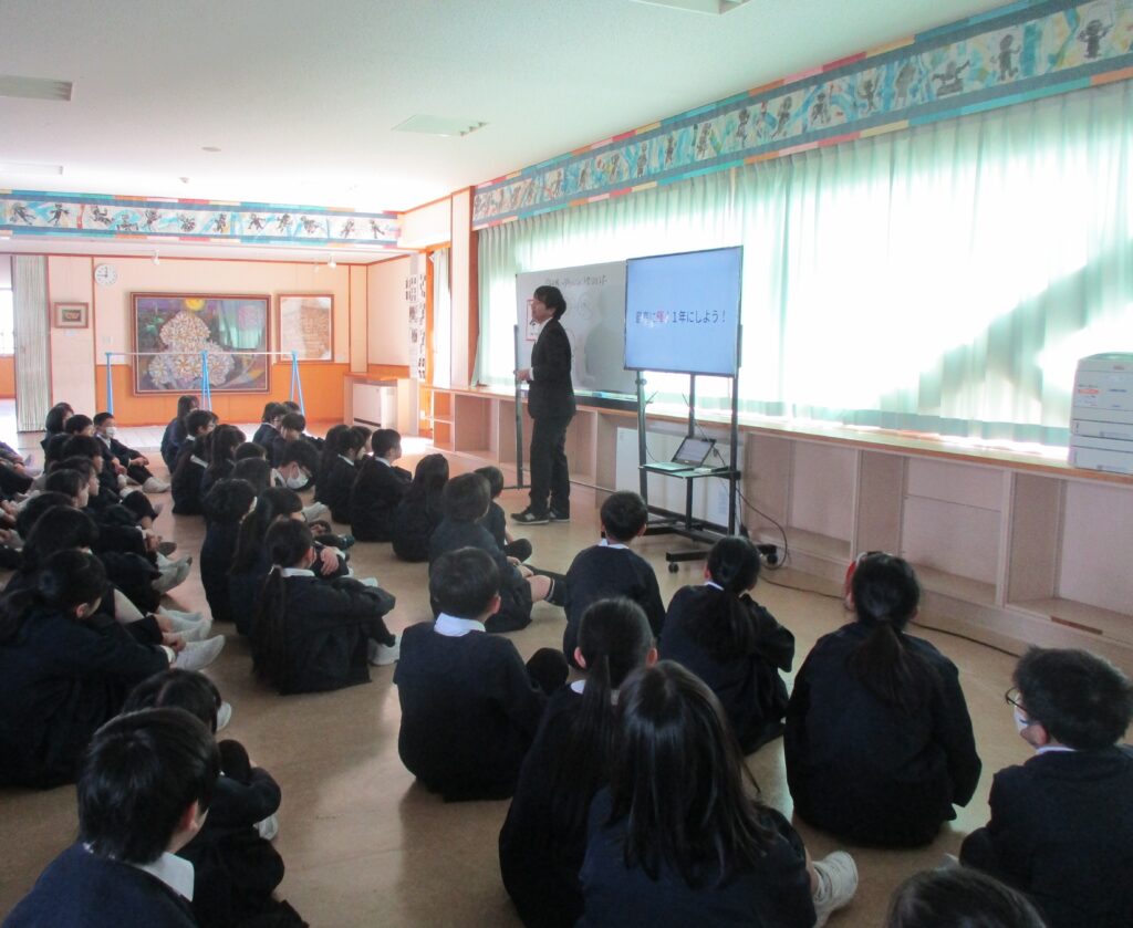 また、1年間の頑張ったこと紹介では、2年生の代表の児童の発表や他の学年の発表を真剣に聞いていました。