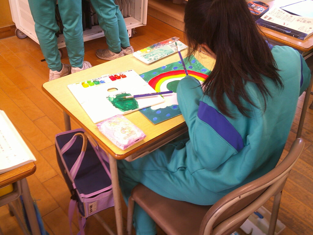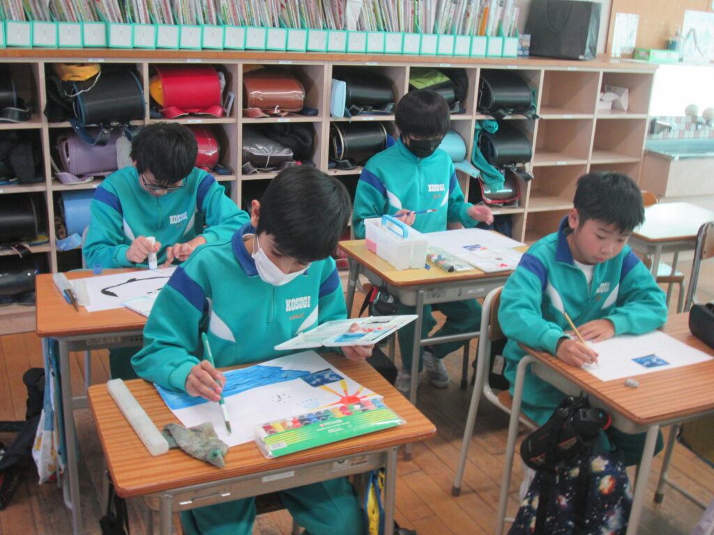 1学期の図工で作った「ふしぎなたまご」の続きをしています。