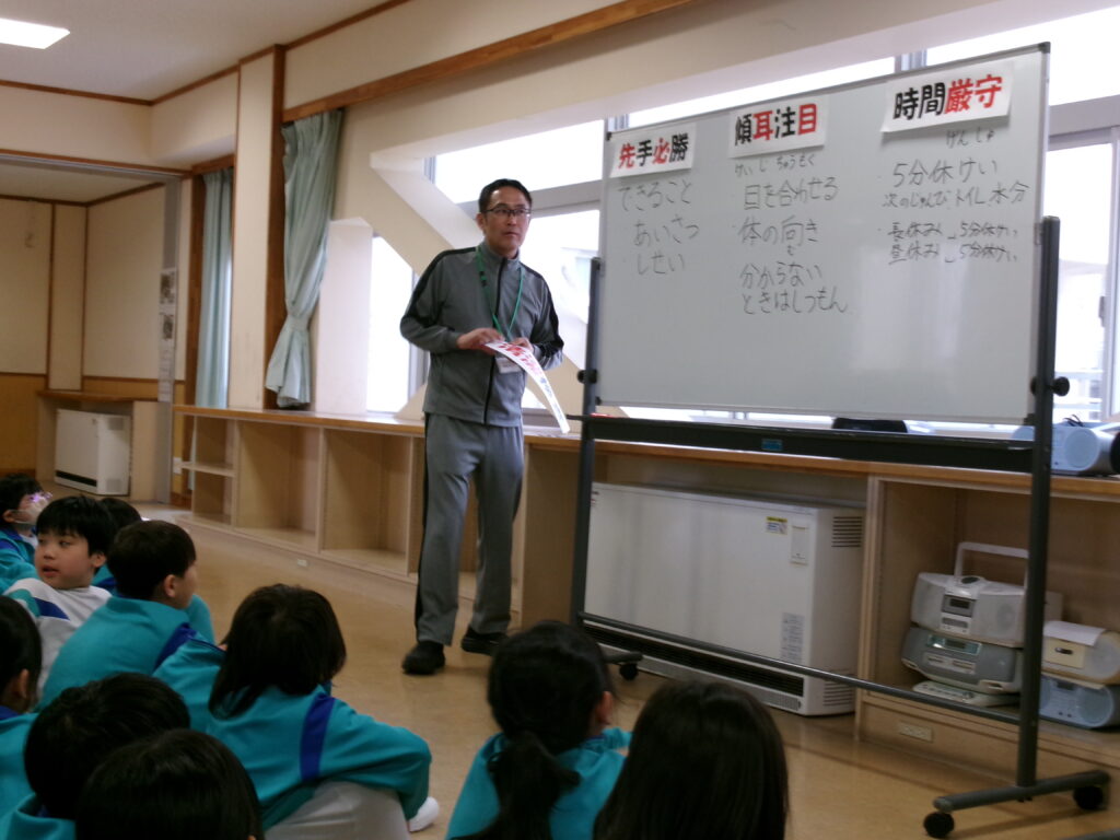 1学期の予定や高学年として大切にしてほしいことについて話を聞きました。宿泊学習や田植え体験等初めての行事があり、子供たちはとても楽しみにしていました。また、学校のリーダーとして活動する場面が増えていくこと、その時はリーダーだけでなく、フォロワーとして全員が支え合い協力して取り組んでいこうと意欲を高めました。